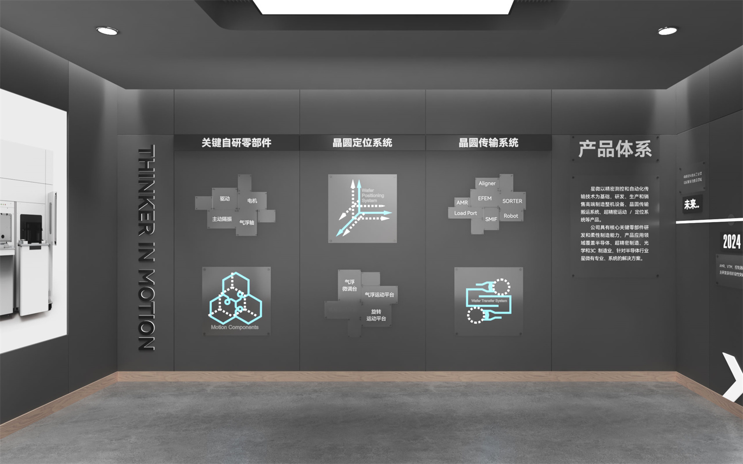 星微科技以「芯」为媒,打造多维度沉浸式展厅,通过「星微简介」「数说星微」「发展历程」「产品体系」等板块,构建半导体产业叙事新空间。项目以「科技灰」为主色调,融合多项数据,形成「品牌-技术-产品」三位一体展示系