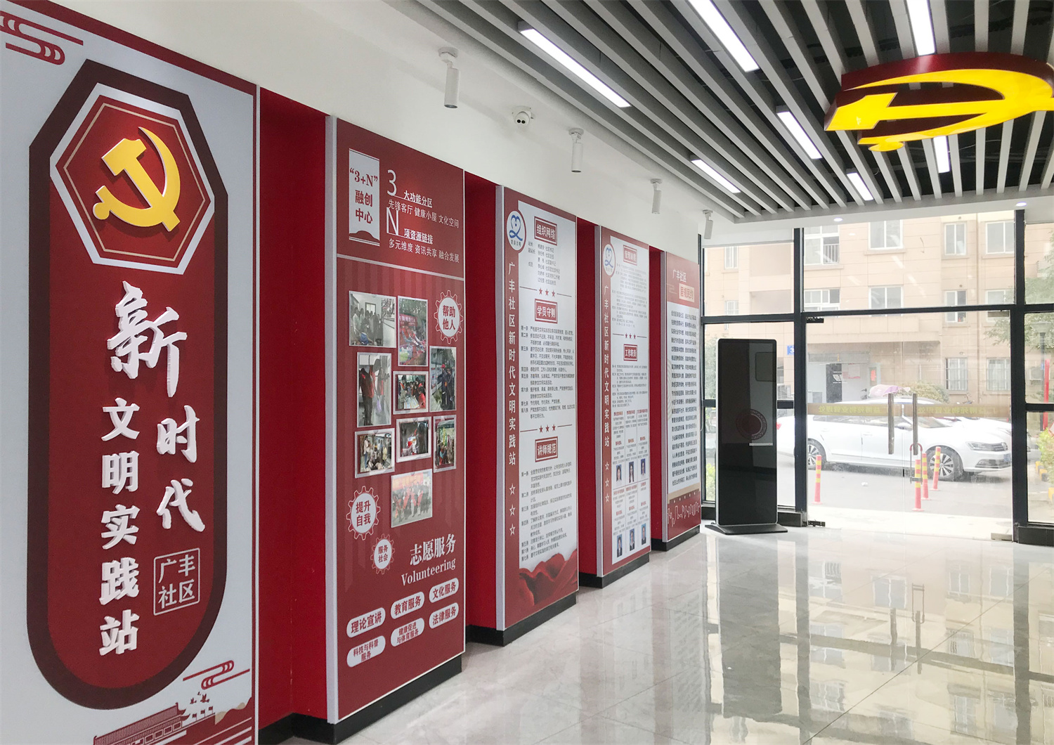 广丰社区新时代文明实践站是社区文化建设的重要载体,旨在通过文化氛围的营造和导视系统的优化,提升社区居民的文化素养和社区凝聚力。本项目通过导视设计和文化氛围布置,打造一个功能完善、文化氛围浓厚的实践站,为社区居民提供更好的文化体验和服务。